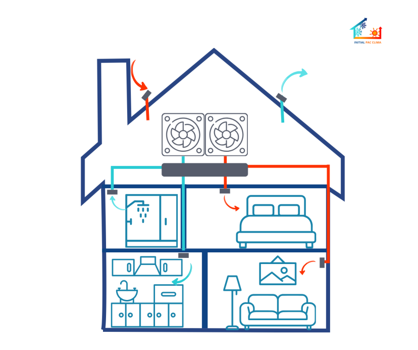 Il circule ensuite dans le logement, notamment sous les portes, avant d’être évacué une fois chargé en humidité et en polluants grâce aux bouches d’extraction.